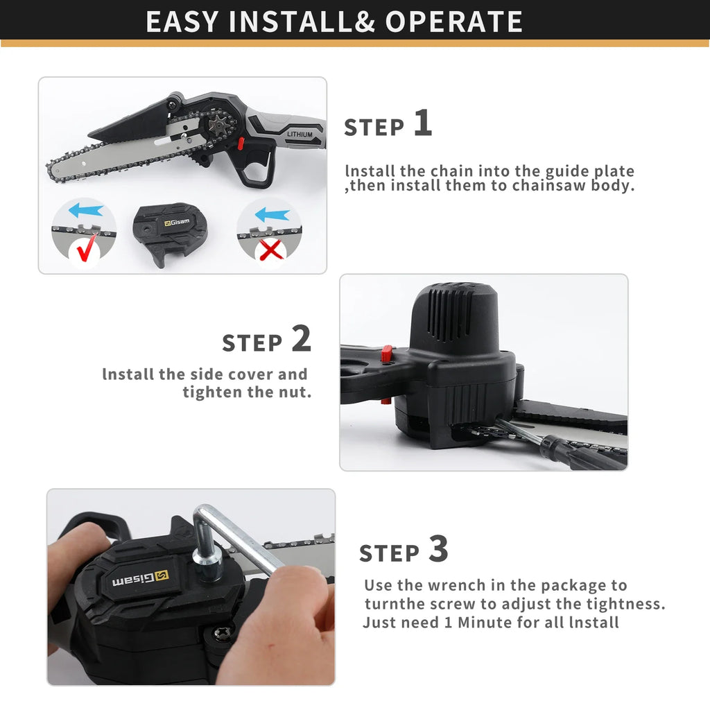 Compare with other type of chainsaw, this chainsaw is proper size and also light, so you can hold and use it more easily, which can be used for more people.