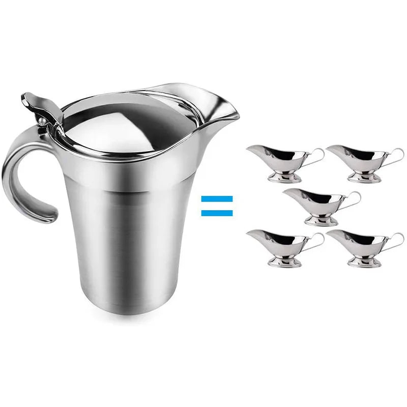 Gravy Boat 304 Stainless Steel Steak Sauce Pot Double Walled Insulated 500/750ml Seasoning Tube Sauce Gravy Pot Kitchen Tools