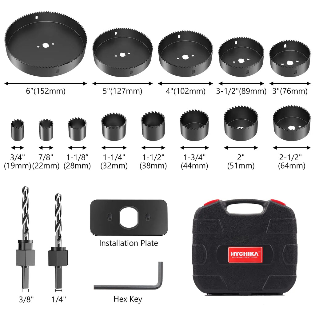 HYCHIKA 19-152mm Hole Saw Set with Storage Box Black for Electric Drill Drilling Wood Wood Metal Plastic Power Tools Accessories