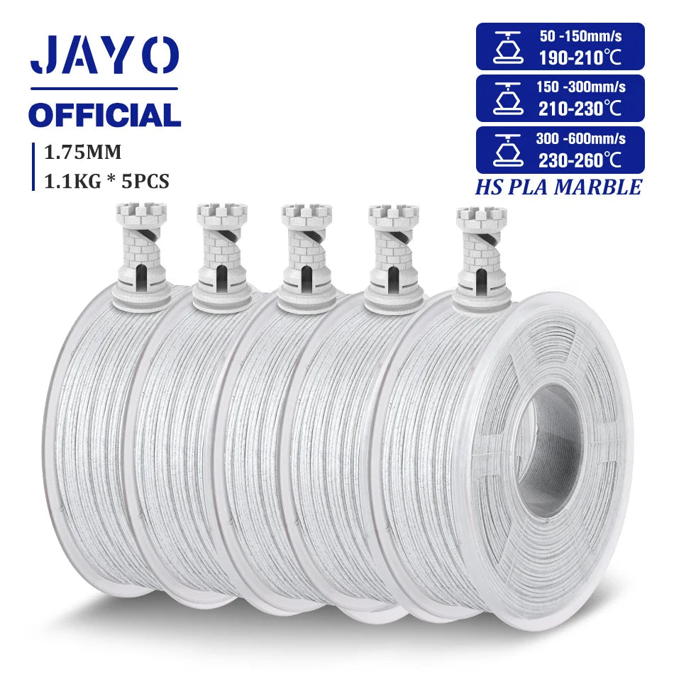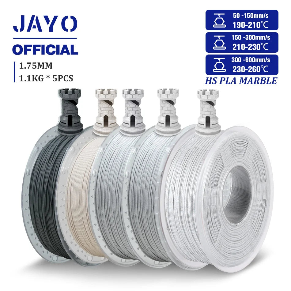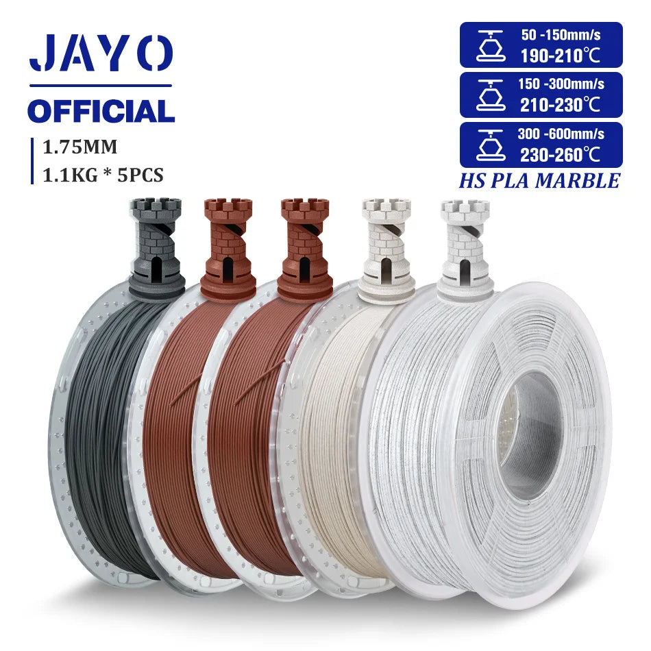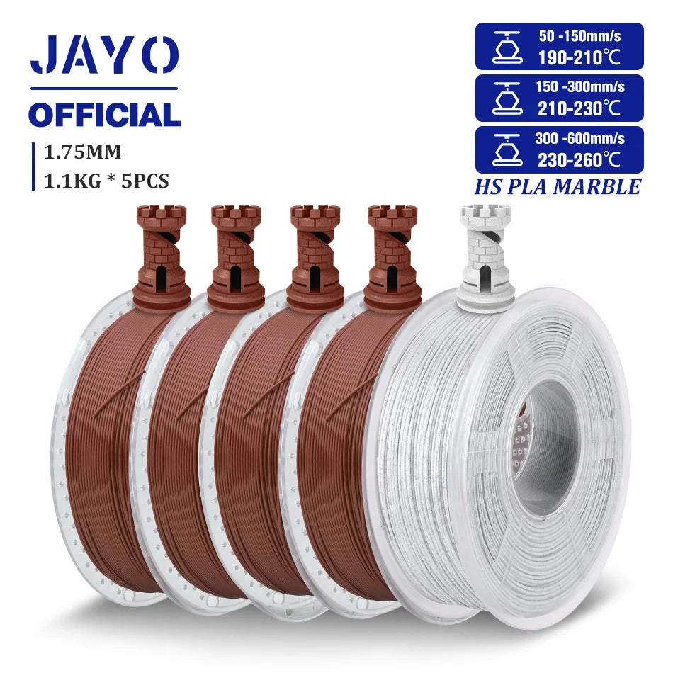 JAYO High Speed PLA marble filament allowing for 50-600mm/s fast printing speed, which is 6 times faster than regular PLA.