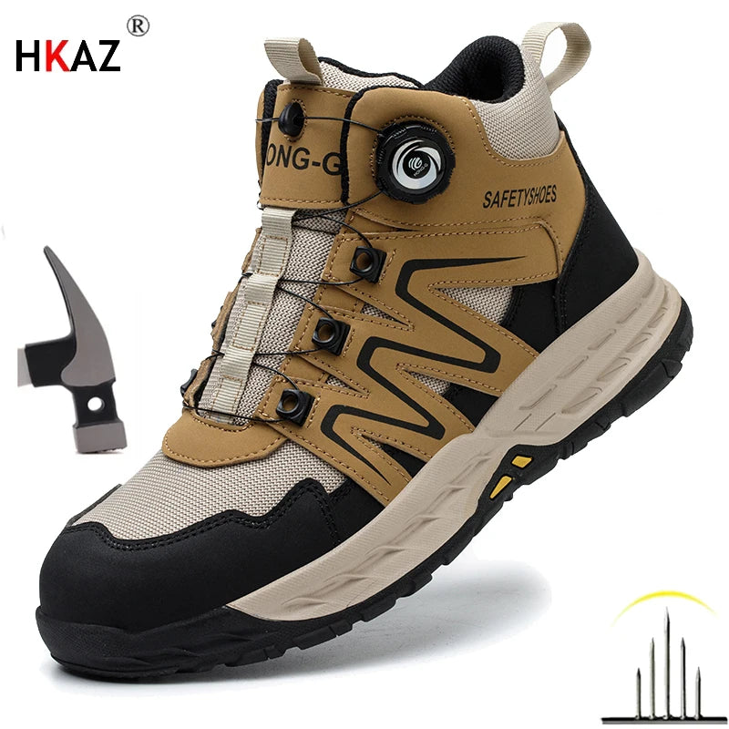 Men Work Shoes Slip-resistant shoes Rotating Button Fashion Shoes Comfortable Sport Shoes boots men work waterproof Anti shock