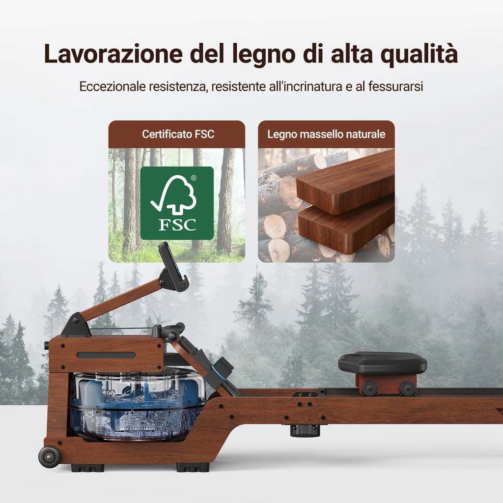 • Premium Hardwood: Crafted from high-quality, FSC-certified wood, our water rowing machine boasts a 330-pound weight capacity, ensuring durability and sustainability.