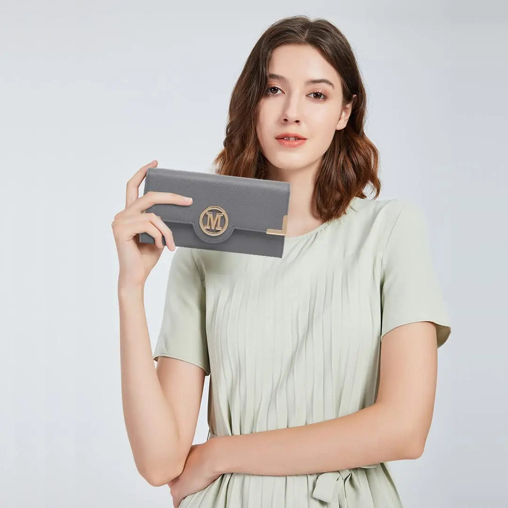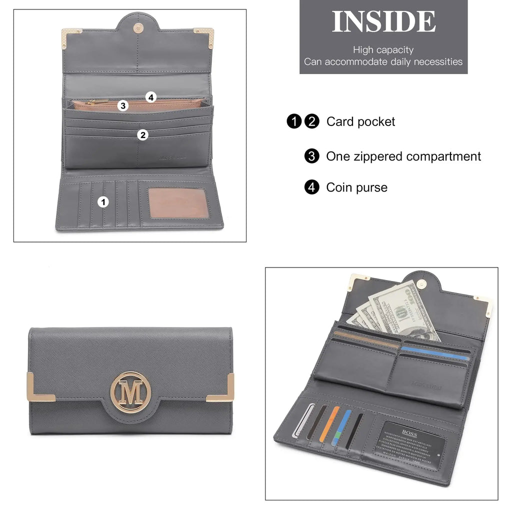 Miss Lulu WOMEN'S purse Long Wallet with zipper PU leather Card hand fan keys Holder Phone Case
