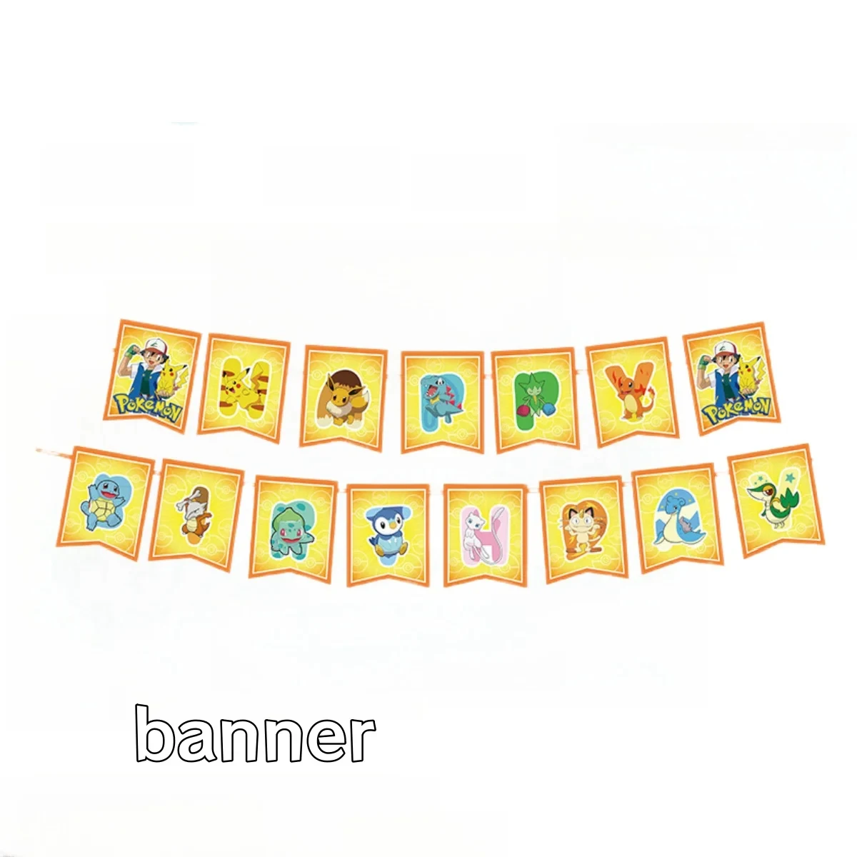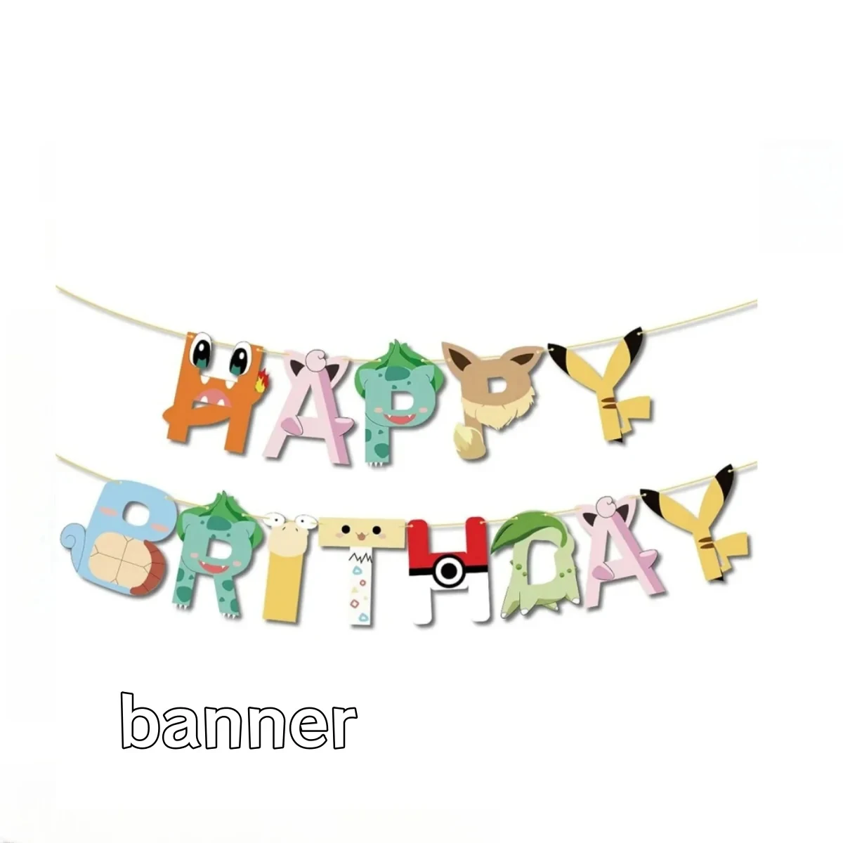 Pokemon Happy Birthday Banner Party Decoration Pikachu Flag Banner Baby Shower Kids Boys Favors Gifts For Party Decor Supplies