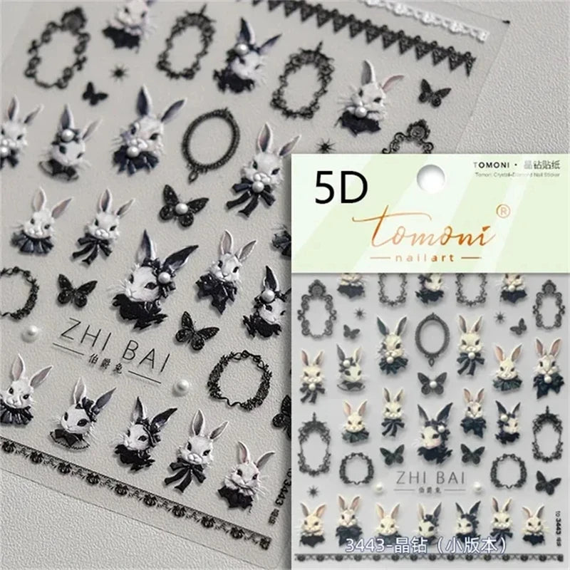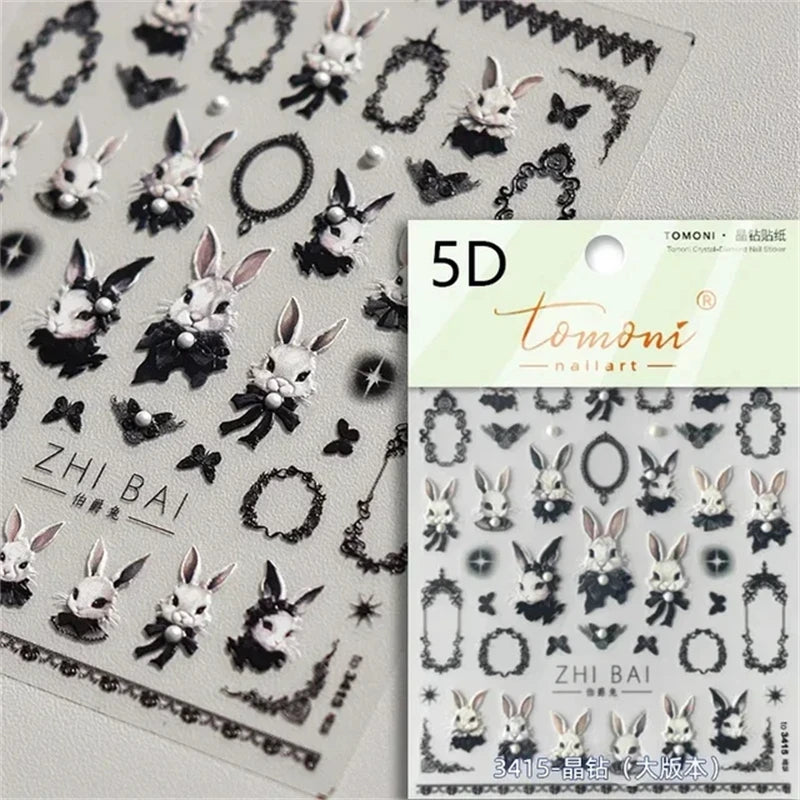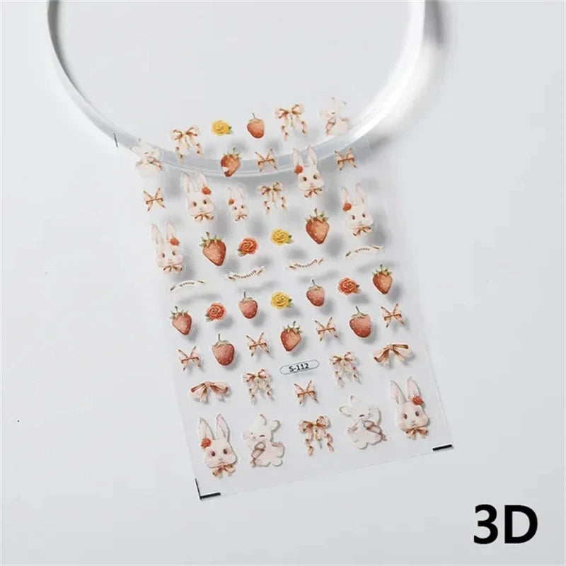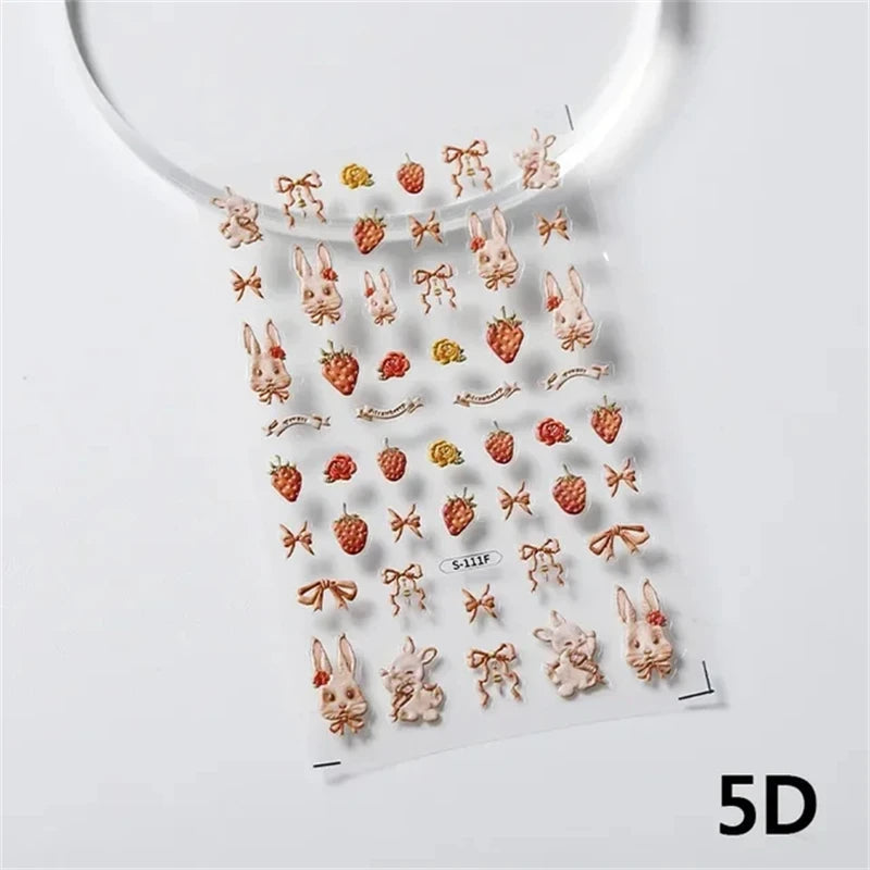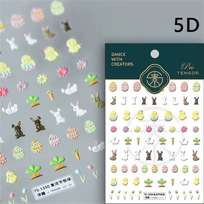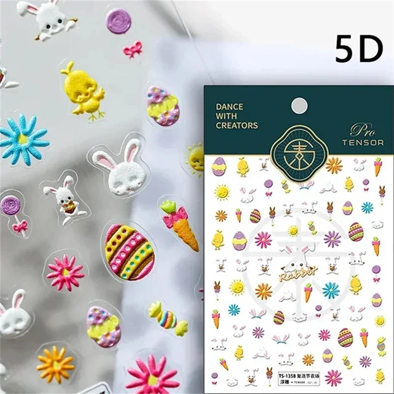 Rabbit Pearl Butterfly 5D Easter Egg Nobility Cute Bunny Soft Relief Self Adhesive Nail Art Decoration Sticker Hot 3D Nail Decal