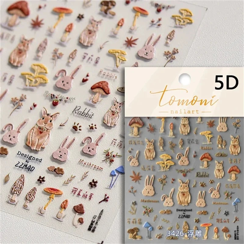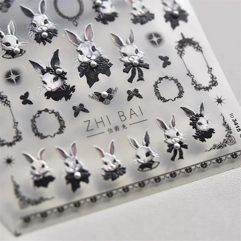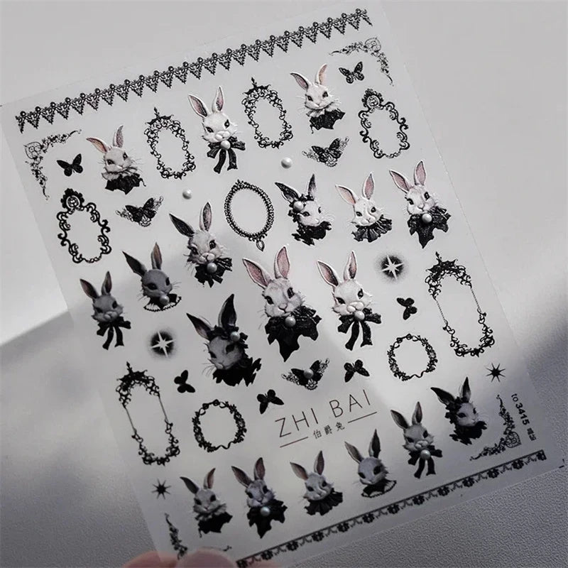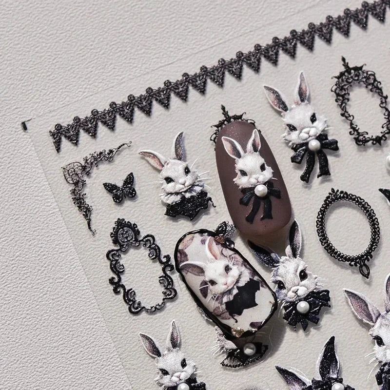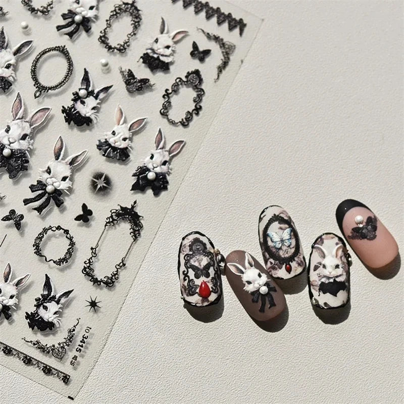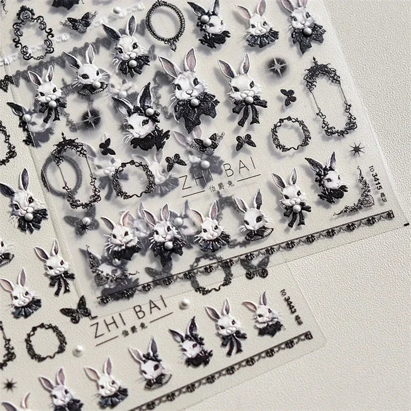 Rabbit Pearl Butterfly 5D Easter Egg Nobility Cute Bunny Soft Relief Self Adhesive Nail Art Decoration Sticker Hot 3D Nail Decal