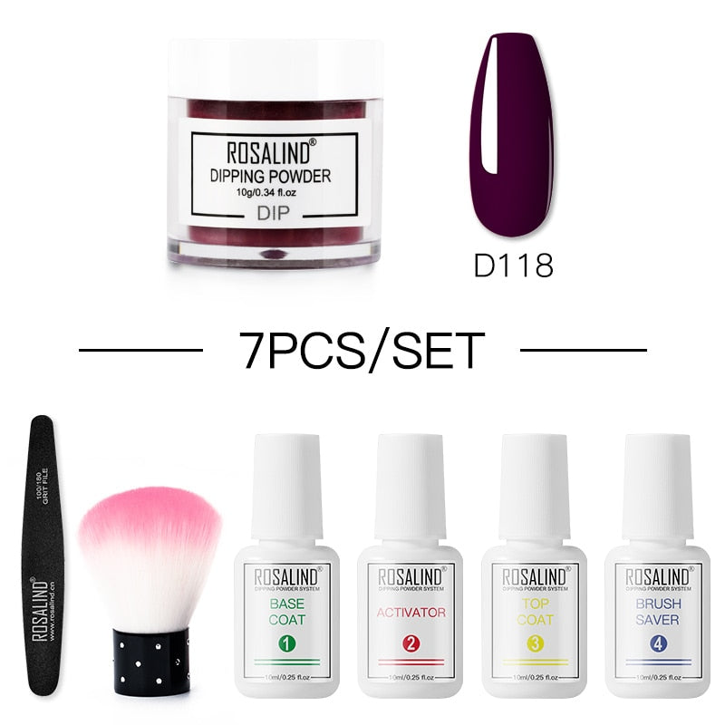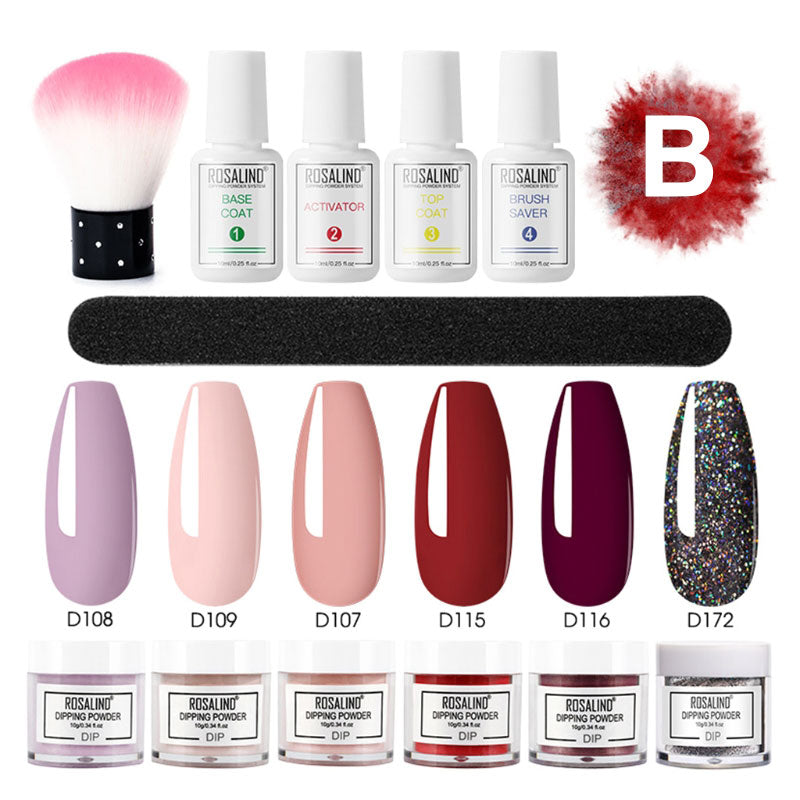 ROSALIND Nail Dipping Powder Set Brush Set Dip French Glitter Shinning Nails 12pcs Manicure Kit Nail Art Acrylic Powder Set
