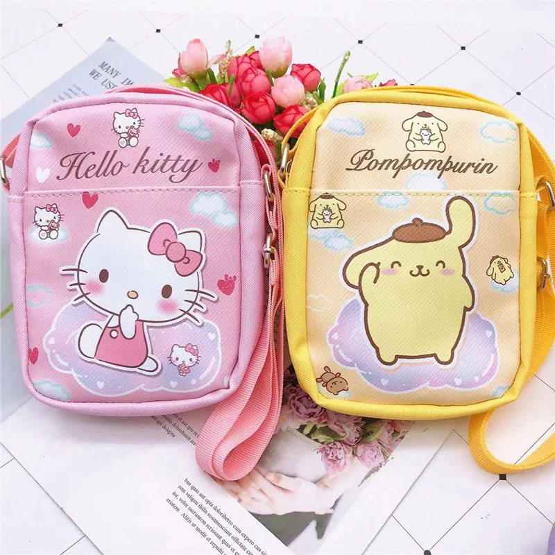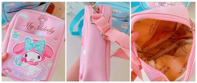 Sanrio Hello Kitty Shoulder Bag Kawaii Cute Cinnamoroll My Melody Kuromi Earphone Phone Storage Bags PU Crossbody bag Girl Gift