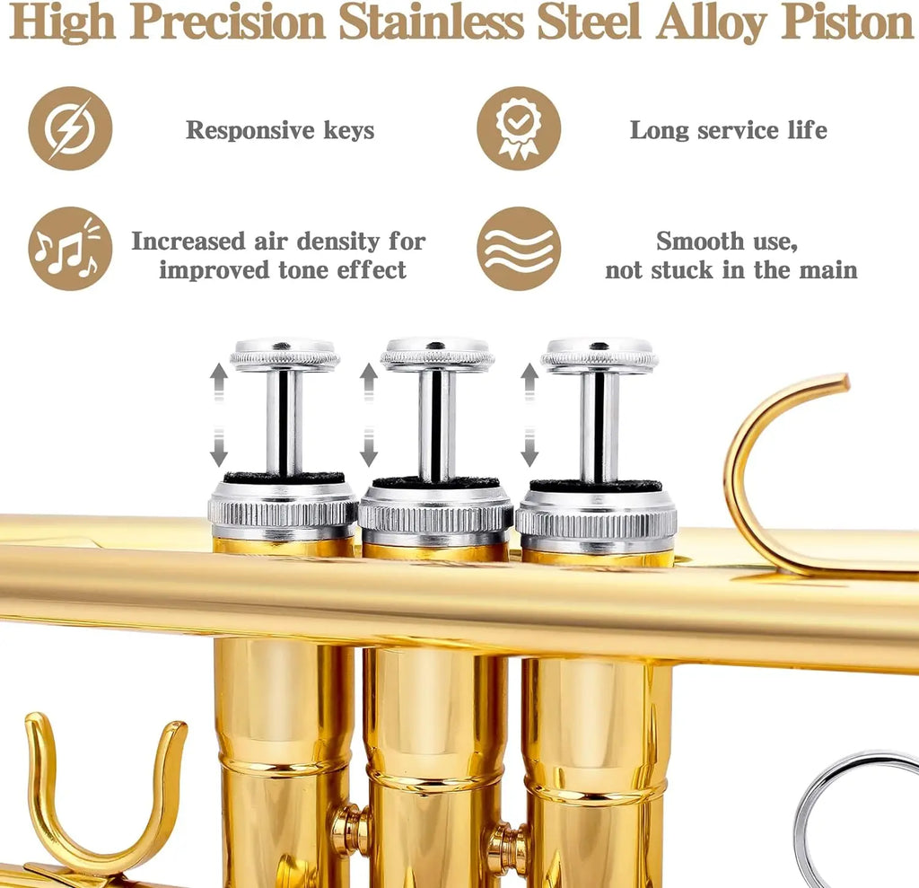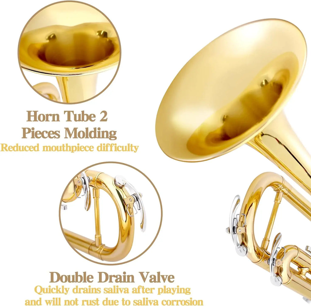Durable high-quality brass, seamless lead-free precision welding. blowing mouth effortless, penetrating sound, smooth valve, easy to play, students and beginners like marching bands, daily practice or playing.
