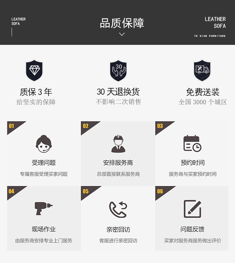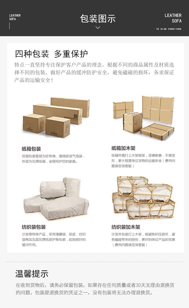 | [Production cycle]] | Furniture production requires a certain period of time. Please negotiate with customer service for the delivery time. At the same time, in order to ensure that the delivery information is correct and the delivery is on time, please keep Wangwang and the phone open. | ||
