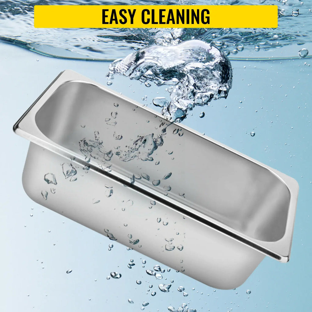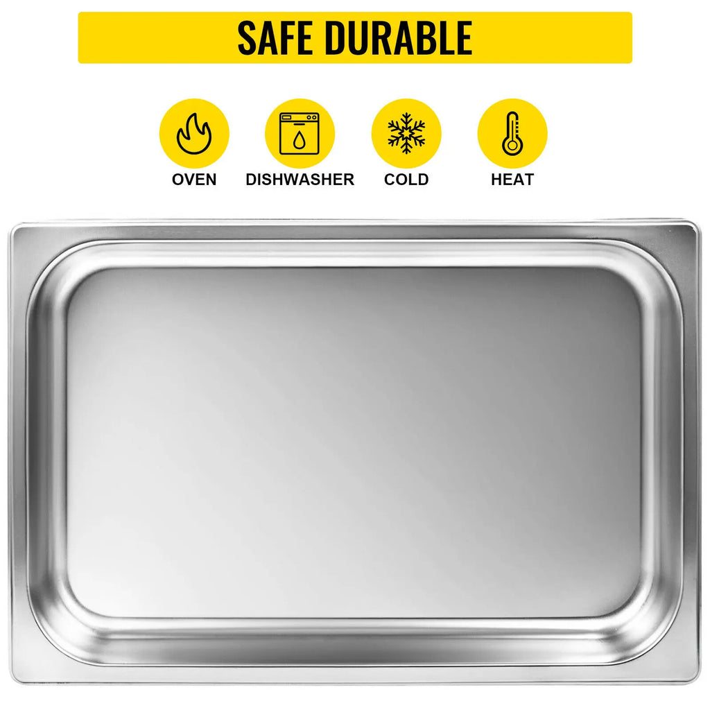 Easy Cleaning for Convenience: The smooth surface of these catering pans makes them simple to clean. You can wash them manually with detergent and cloth or use a dishwasher for added convenience, ensuring they remain spotless after each use.