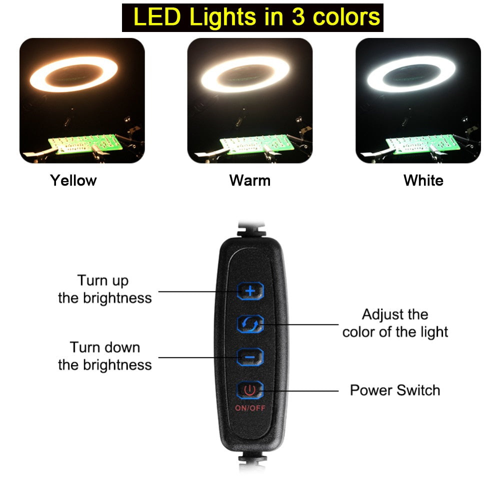 5.USB 3X Magnifying Glass can help you do better job.Magnifying glass with LED light, the color temperature of LED light can be adjusted in 3 steps and the brightness can be adjusted in 11 steps, it can meet various working environments.