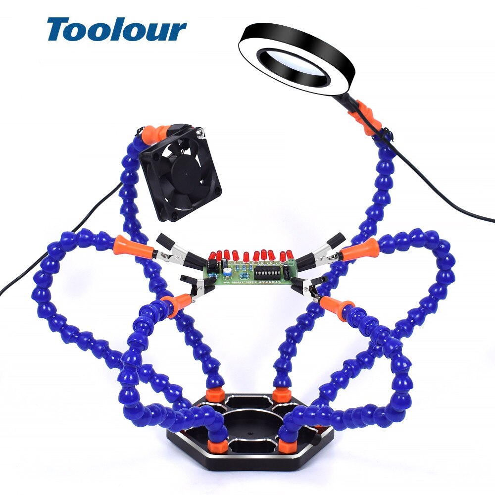 Toolour Multi Soldering Station Helping Third Hand Tool 3X USB LED Magnifying Glass Lamp USB Fan For PCB Welding Repair Station