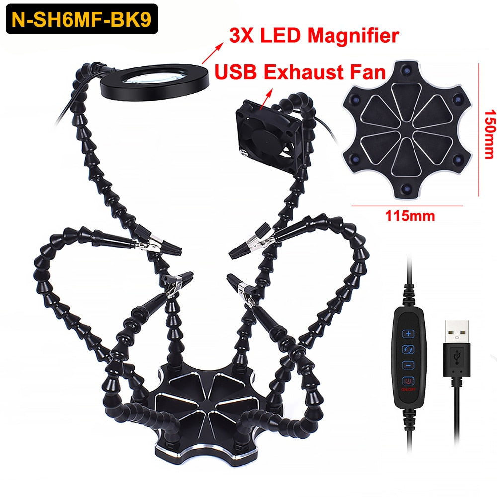 Toolour Multi Soldering Station Helping Third Hand 3X USB LED Magnifying Glass Lamp USB Fan For PCB Welding Repair Station Tool