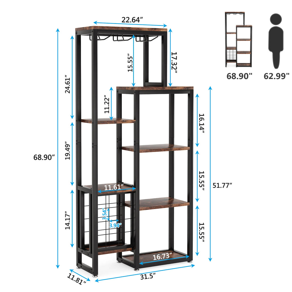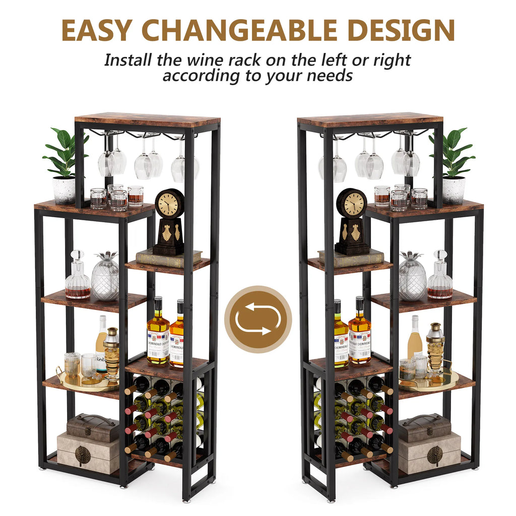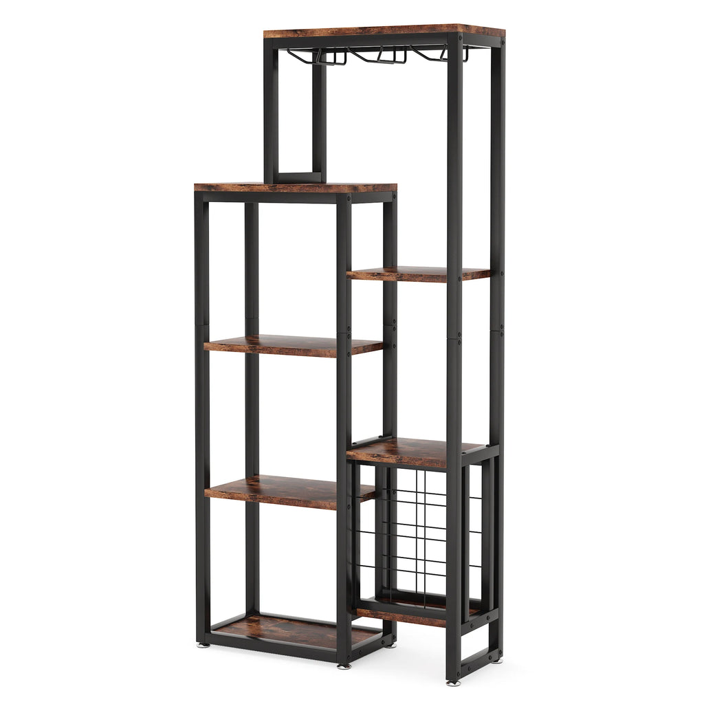 Tribesigns Wine Rack Freestanding Floor, 5-Tier Wine Baker Rack with Glass Holder & Wine Storage, Industrial Wine Display Shelf