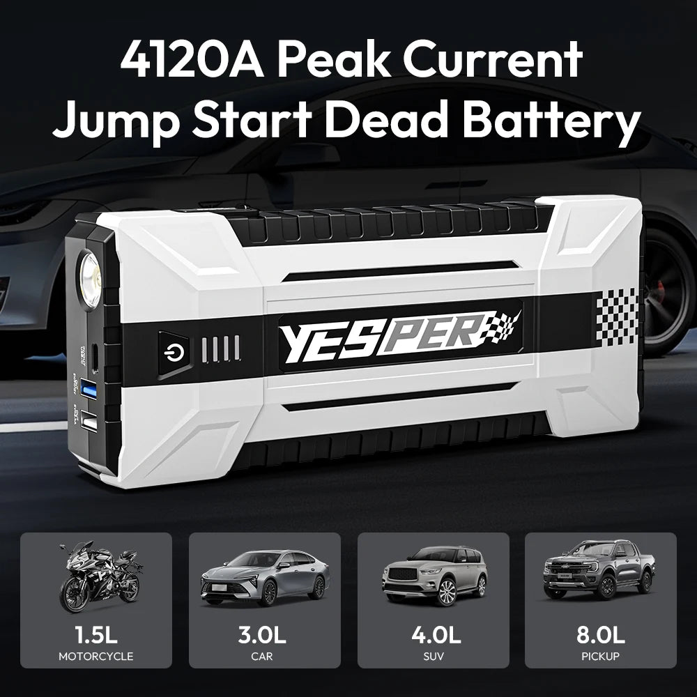 YESPER Starting Device 4120A Peak Jump starter For car ,ALL Gas and Up to 10.0L Diesel Engine,26800mAh Car External battery