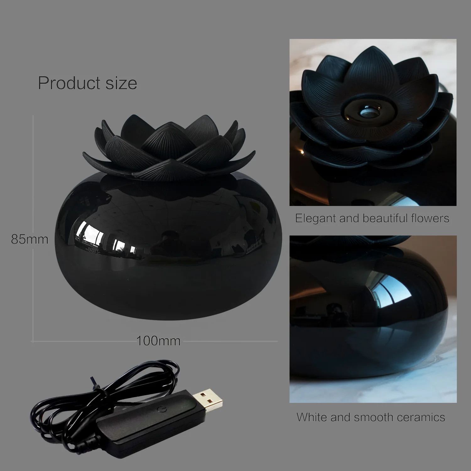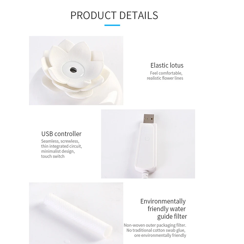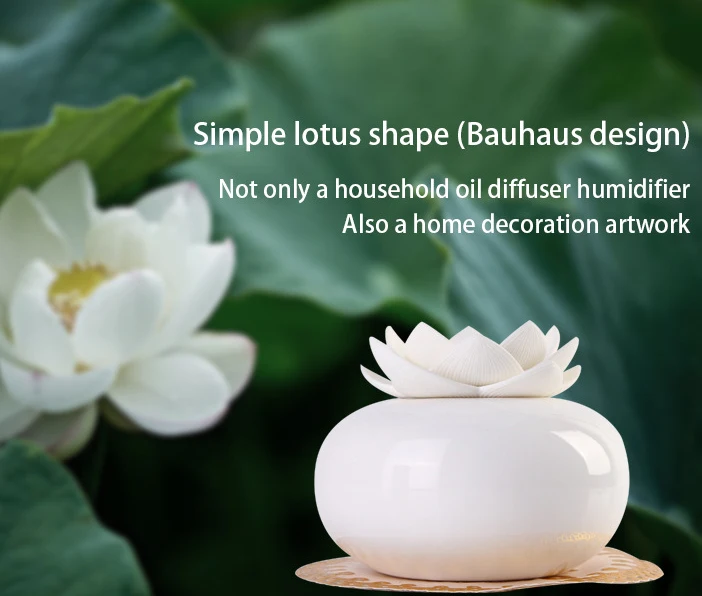 Flower Artwork Decorative,Not only an oil diffuser but also a decorative lotus artware for home office. Pure ceramic bottom and top white lotus let you feel nature, high-grade and quiet, put it on your desk to bring you good mood, enjoy this cute humidifier with clean, fresh and sweet air. (Only USB cord, adapter is NOT included.)