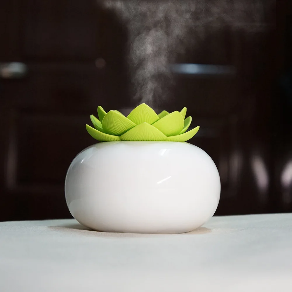 200ml Cute Flower Essential Oil Diffuser Decorative Aromatherapy Diffusor Lotus Ceramic Humidifier Crafts USB 12 Hours