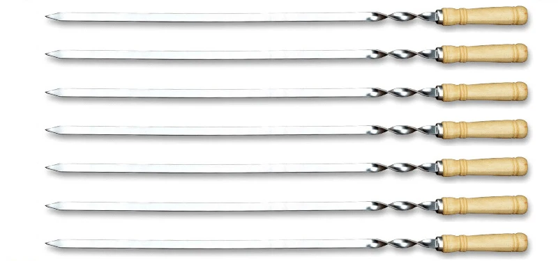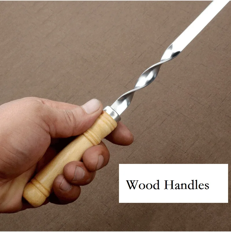 Kabob BBQ Grill Skewers Features: Food grade Stainless, Wooden Handle