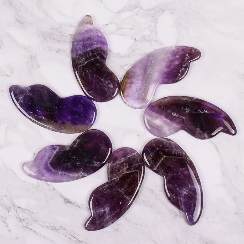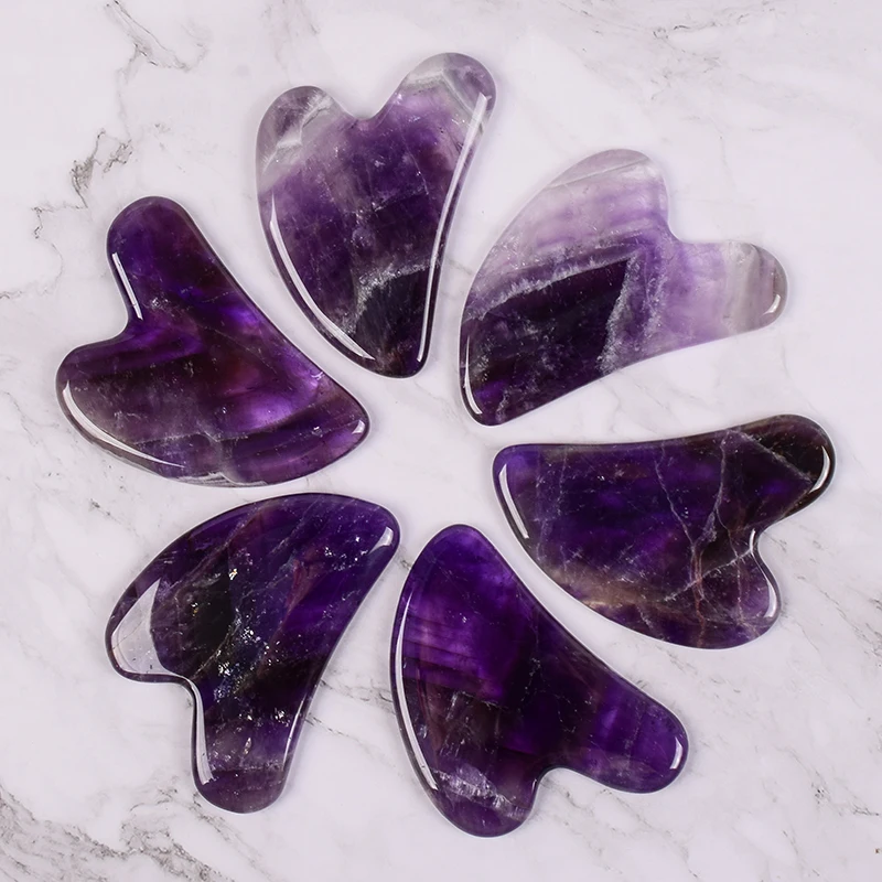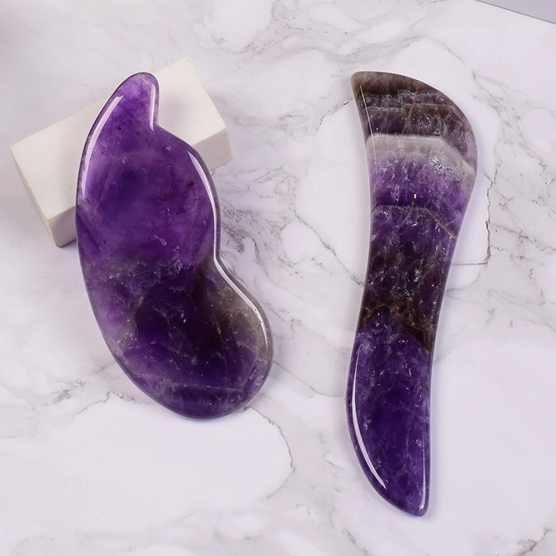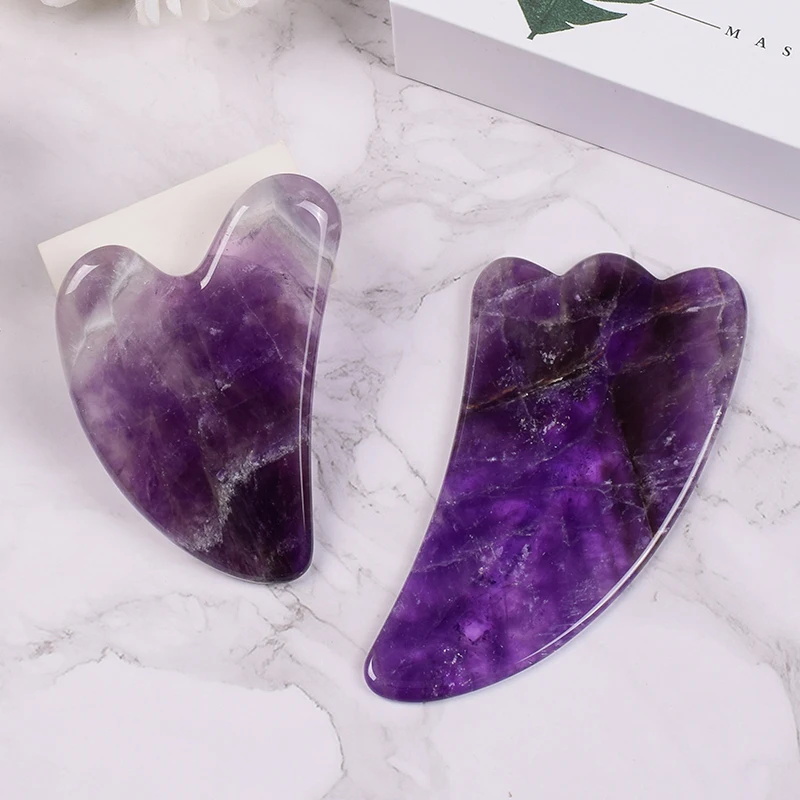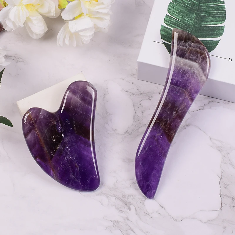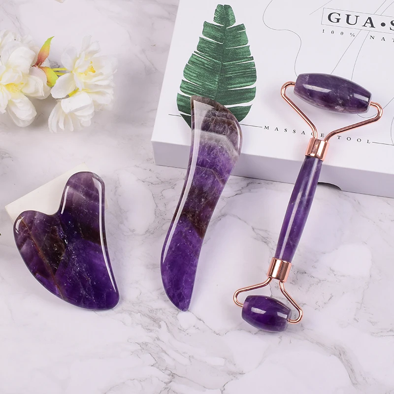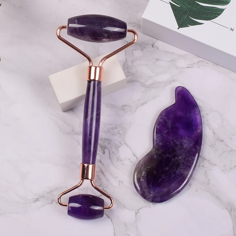 Amethyst Massager Natural Stone Facial Roller Gua Sha Tools Set SPA Acupuncture Scraping Crystal Body Face Health Care massage