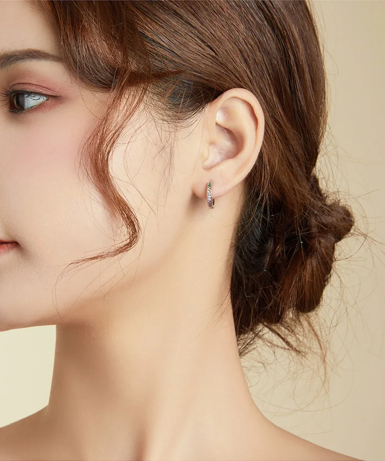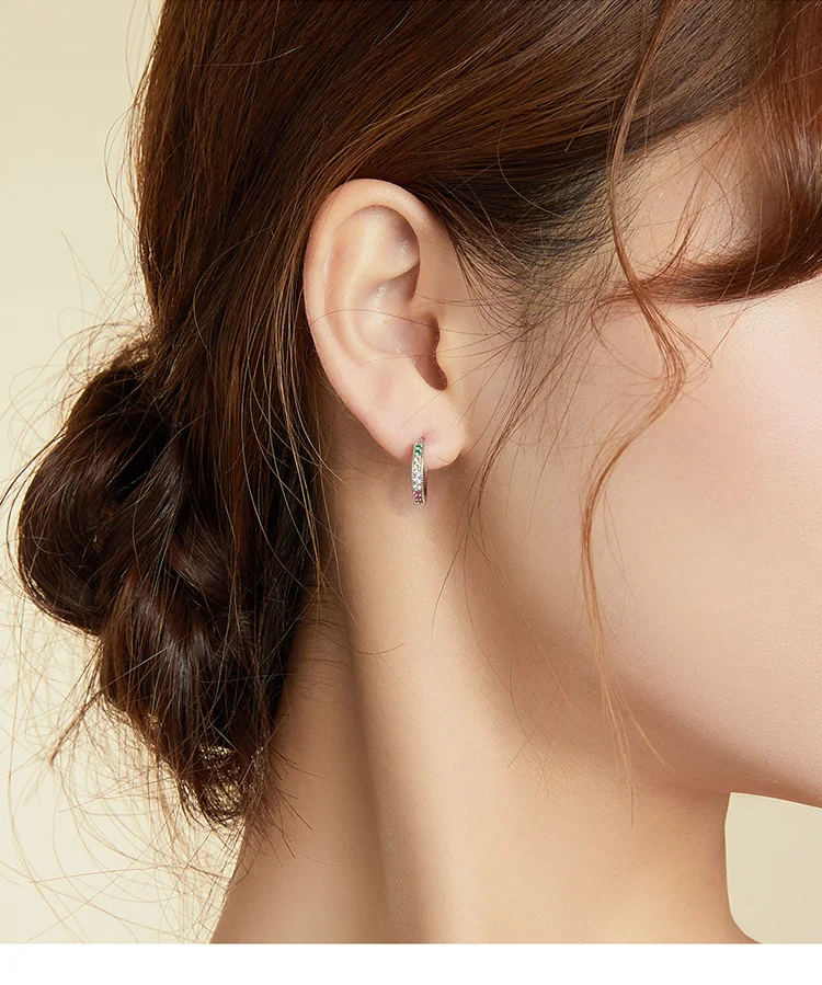 bamoer 925 Sterling Silver CZ Simple Female Hoop Earrings Jewelry for Women Sterling Silver Jewelry PAS456