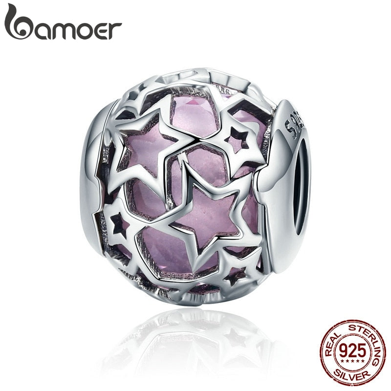 BAMOER BAMOER 100% 925 Sterling Silver Radiant Hearts, Opalescent Pink Crystal Beads Fit Charm Bracelets DIY Jewelry SCC510