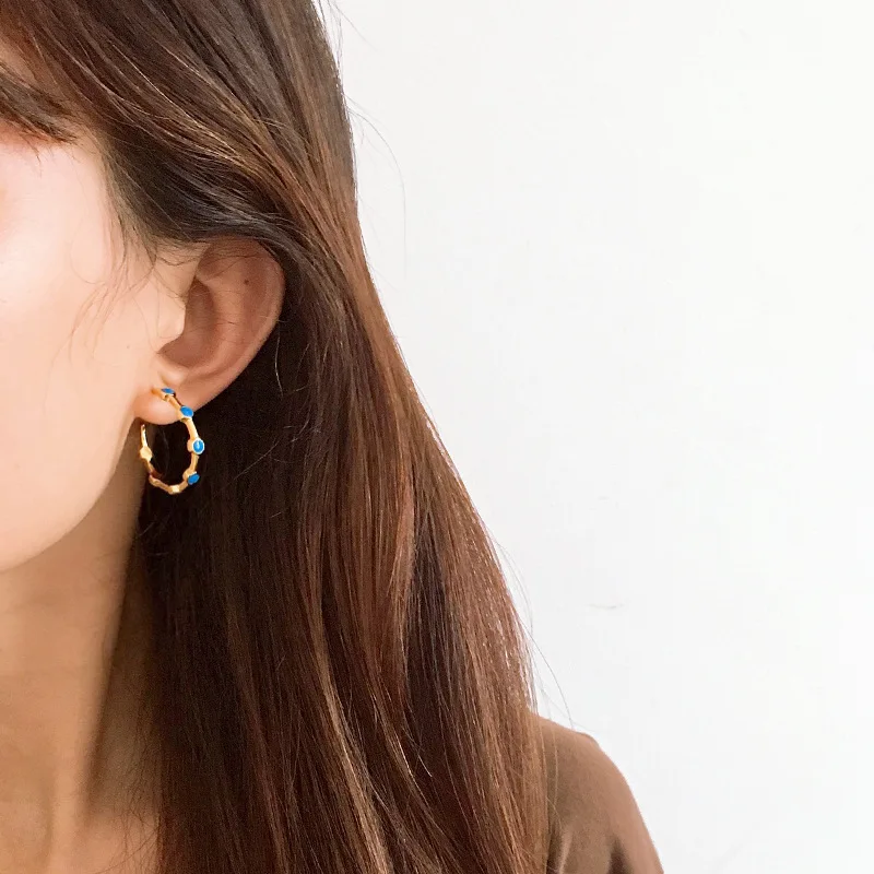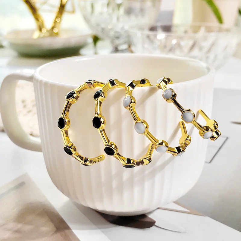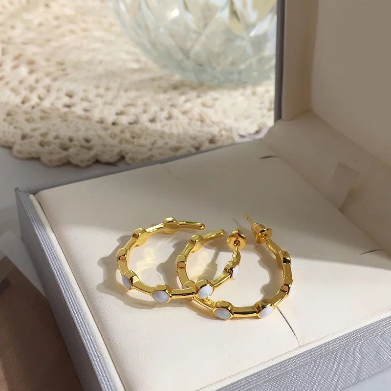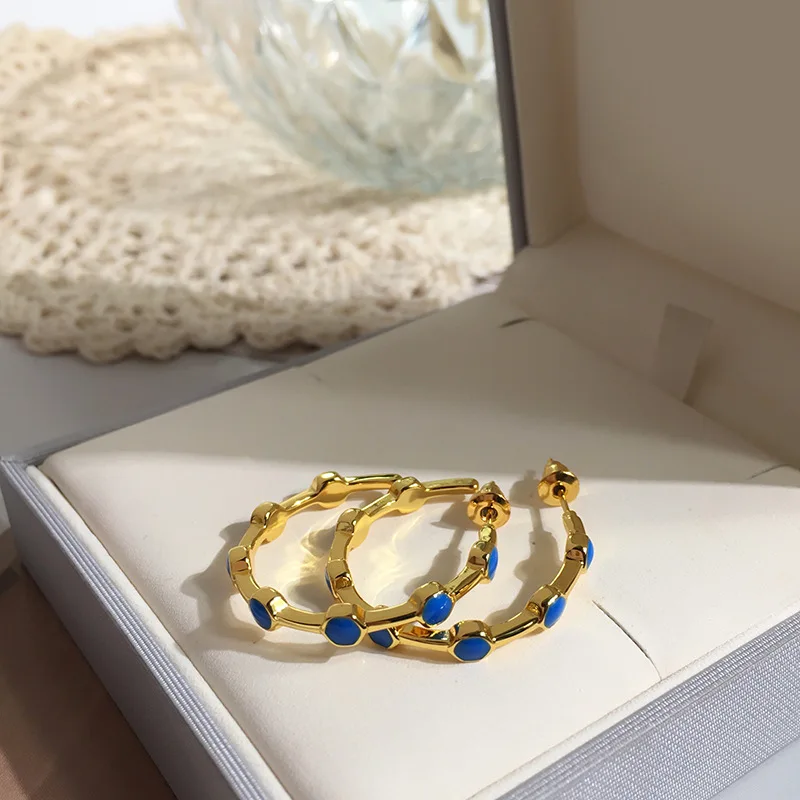 Brass With 18K Gold Geo Natural Stone Enemal Drop Earrings Women Jewelry Punk Party Gown Runway Korean Japan INS Fashion