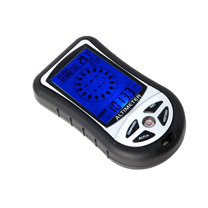 8 in 1 Function: Digital altimeter, with digital barometer, digital compass, weather forecast, time, calendar, thermometer, and backlight