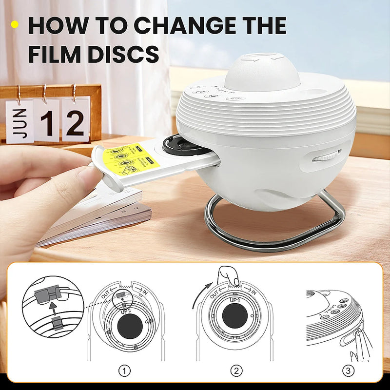 Built-in meteor fall effect creating a romantic atmosphere. This galaxy projector for bedroom comes with 13 replaceable film discs: Earth, Solar System, The Milky Way, Pillars of Creation, Black Hole, Observable Universe, Cosmic 'Winter' Wonderland, The Orion Nebula, Dinosaur, Marine Organism, Valentine's Day, Christmas, Moon(In-built).Transform any space into a mesmerizing celestial wonderland with our realistic planetarium galaxy projector, offers an immersive experience for kids and adults alike. For special holidays,the star projector casts romantic Valentine's scenes and festive Christmas images, creating a warm and joyful atmosphere.