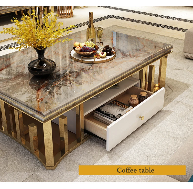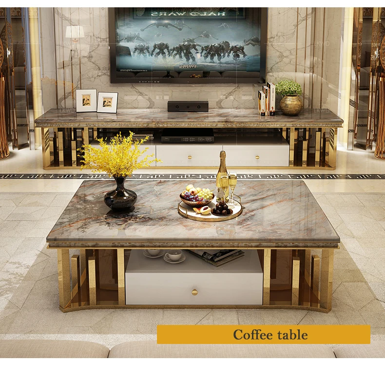Modern marble coffee table TV cabinet combination simple modern living small apartment creative rectangle small tea table sets