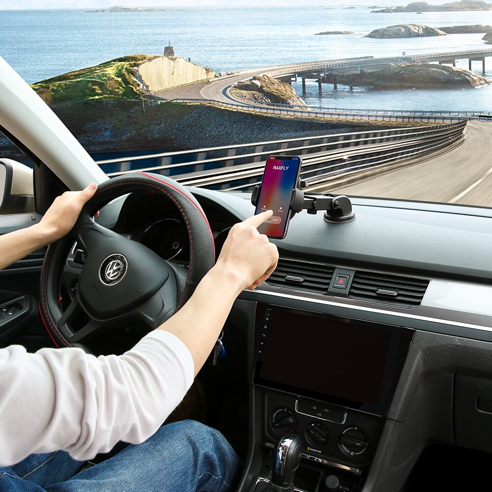 RAXFLY Windshield Mount Car Phone Holder For Phone in Car For Samsung S9 360 Rotation Car Holder For iPhone Phone Stand Support
