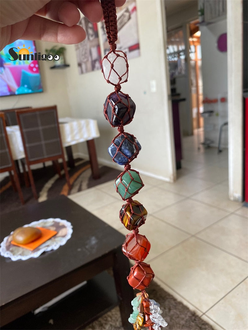 Sunligoo Reiki Healing 7 Chakra Tumbled Gemstone W/ Tassel Spiritual Meditation Window Car Feng Shui Hanging Ornament Home Decor