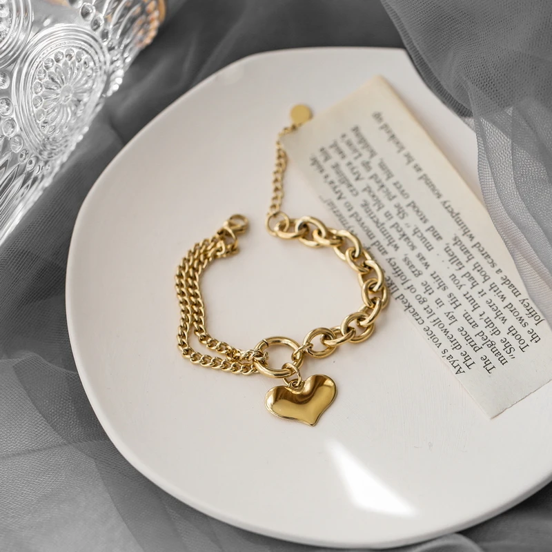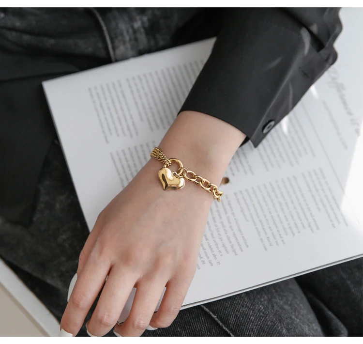 Titanium With 18K Gold Pave Heart Charm Bracelets Japan Korean Style Party Designer T Show Runway INS Stainless Steel Jewelry