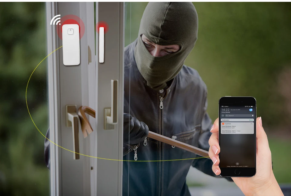 It will push notification messages to you when the door/window opens or closes, so you can discover the intruder in time while you are not home.