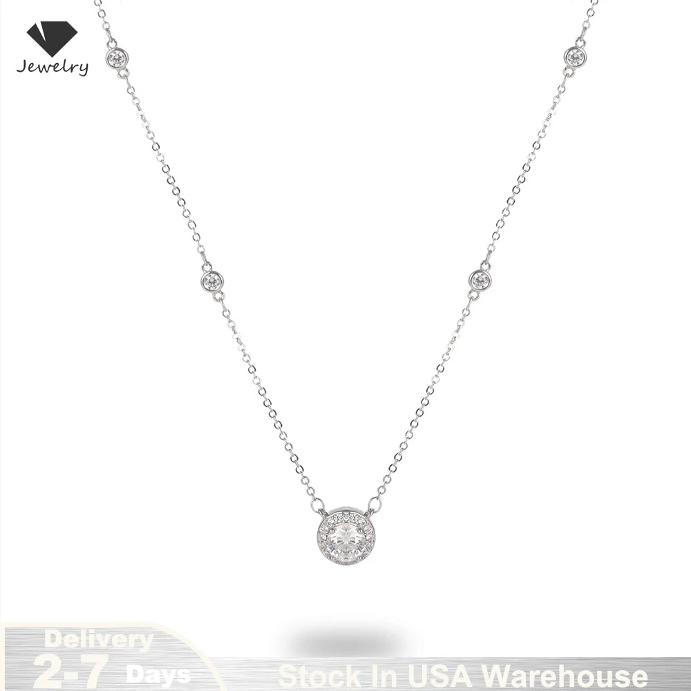 1CT Moissanite Necklace for Women Certified 925 Sterling Silver Sparkling Lab Diamond Pendant Chain Party Jewelry GRA USA Stock
