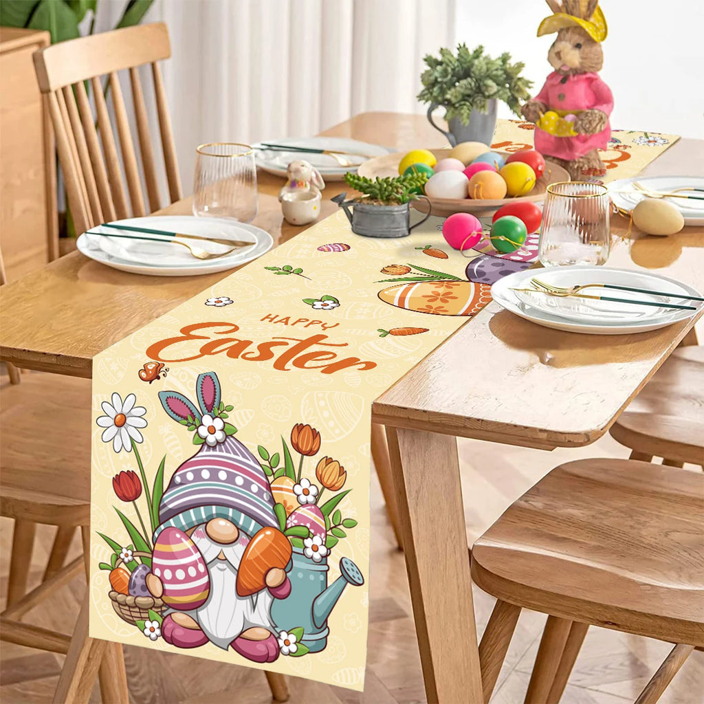 35x180cm Easter Table Runner Watercolour Bunny Eggs Table Runner Easter Decor for Kitchen Dining Table Home Party Decorations
