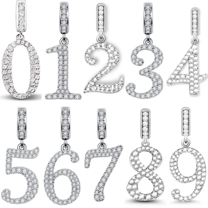 925 Sterling Silver Plated 0-9 Number Dangle Charm Bead Fit Pandora Original Bracelet Necklace DIY Women Jewelry
