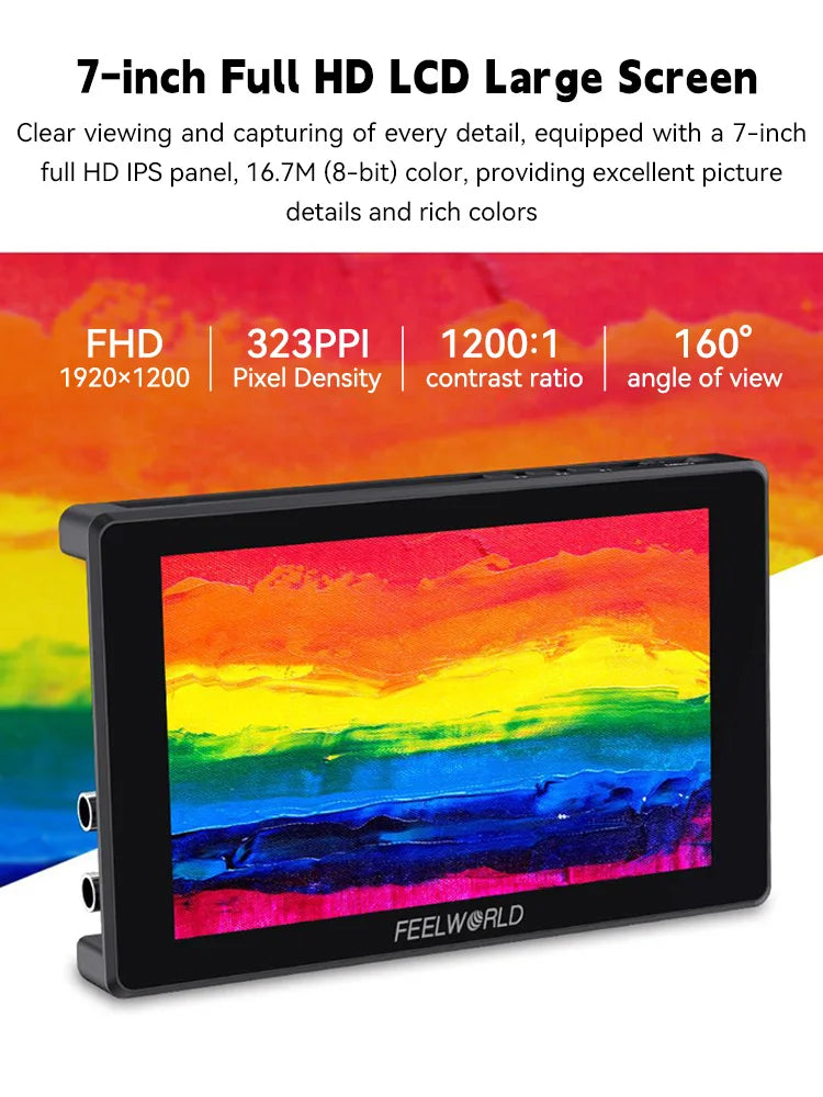 【 Do Brasil 】 FEELWORLD SH7 7-inch Monitor SDI/HDMI-compatible Input/Output Cross Conversion Ultra Bright 2200nit 1920x1200