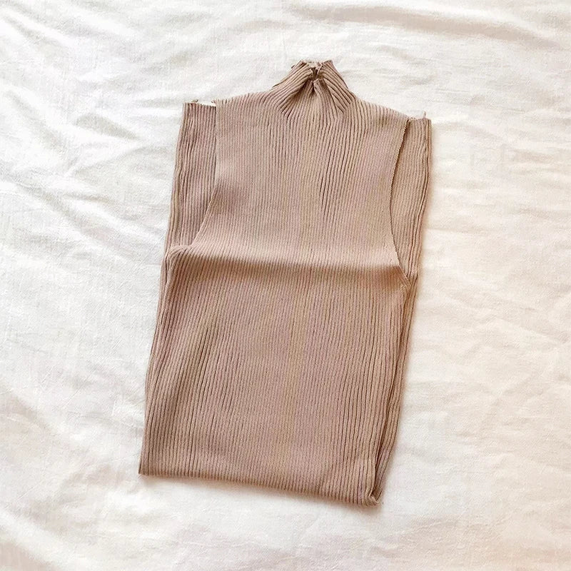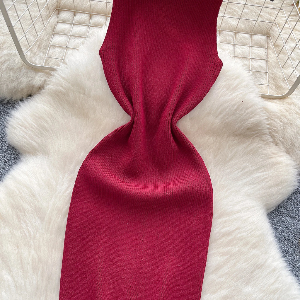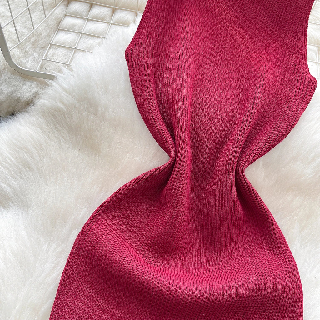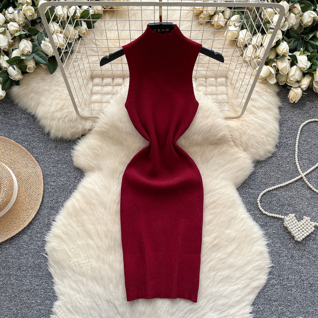 Half High Collar Summer Lace Up Sexy Short Dress Women Sleeveless Slim Sundress Knitted Mini Bodycon Dress Streetwear Outfit