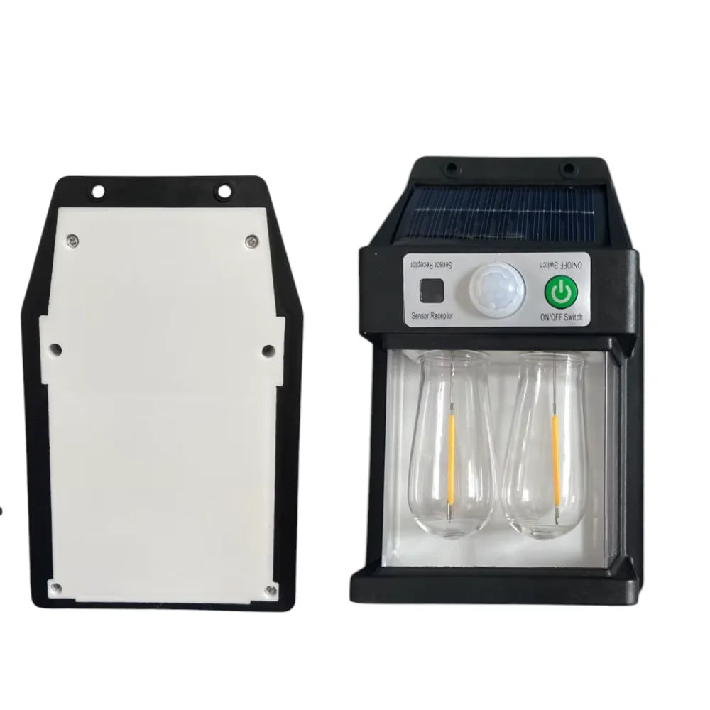 Potência e Eficiência: Equipada com duas lâmpadas de tungstênio de 2W / 1200LM, nossa arandela solar garante uma iluminação eficiente sem gastar muita energia.