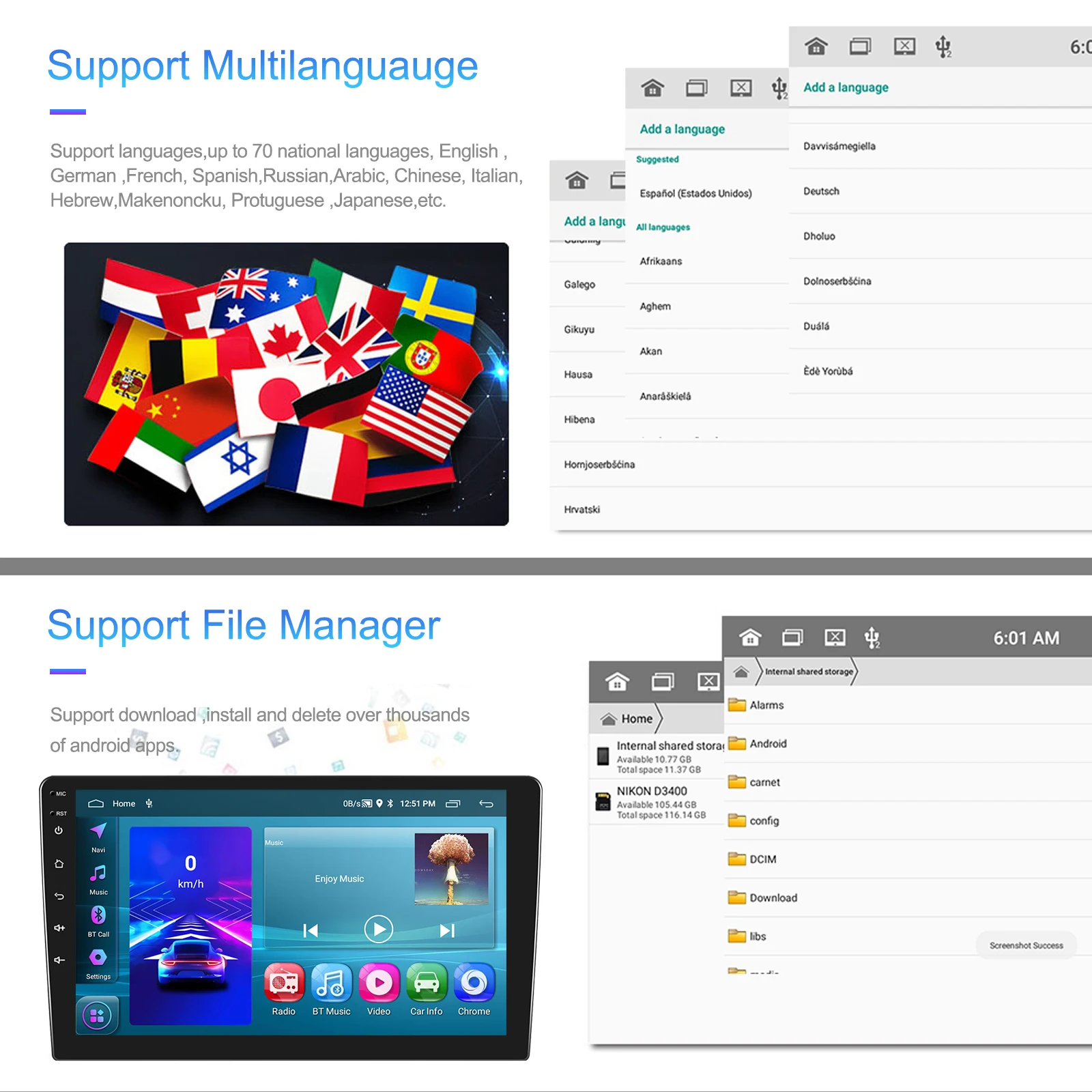 Screen size:7''/9''/10''