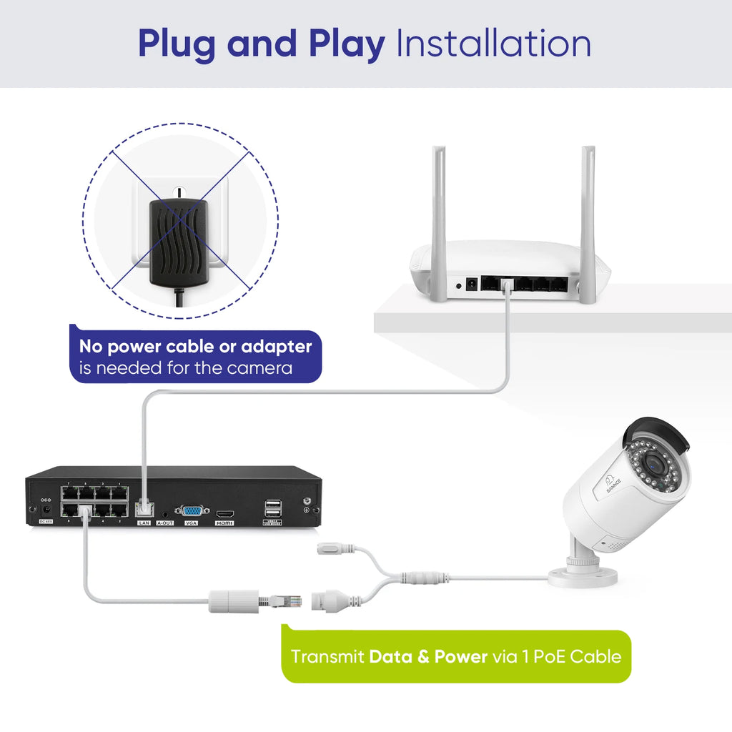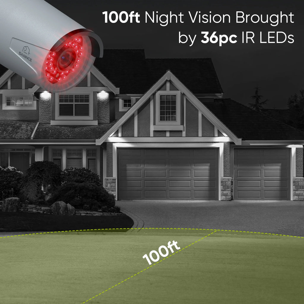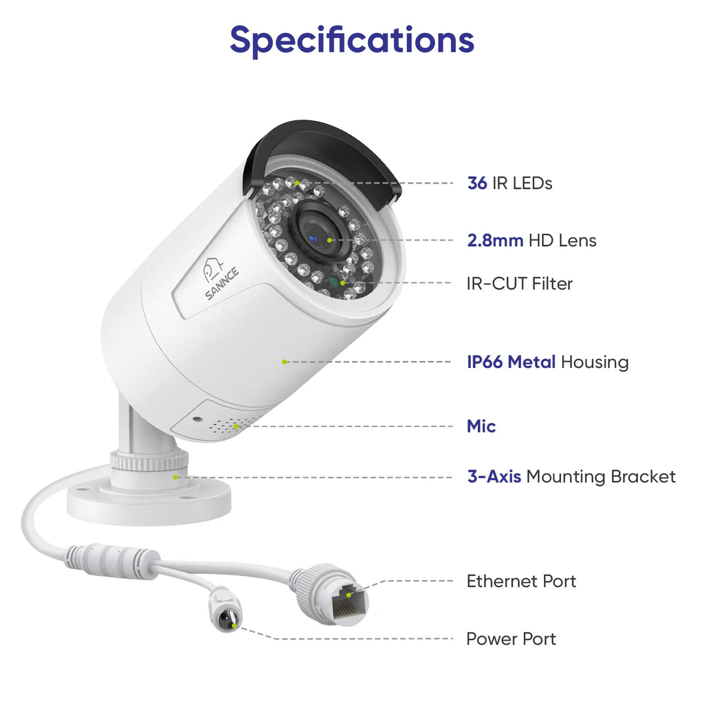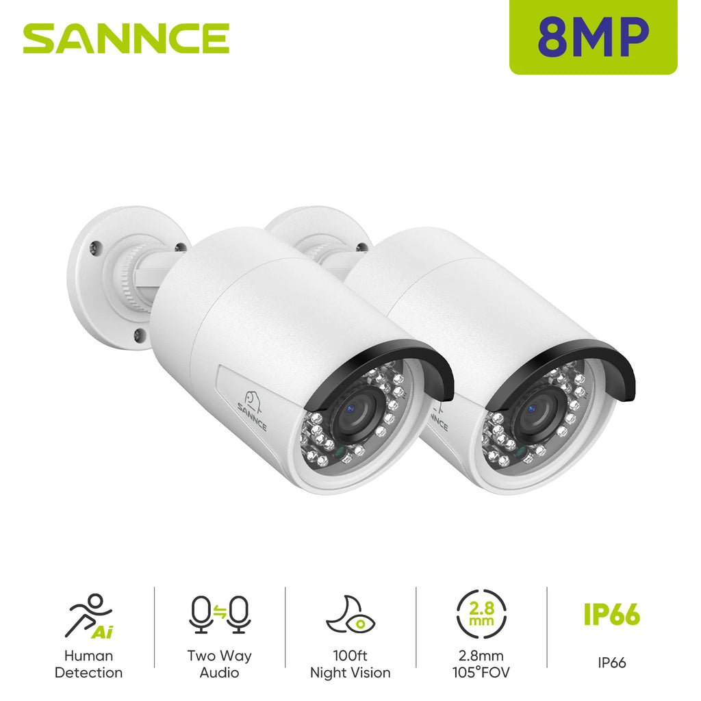 SANNCE 2PCS Ultra HD 2MP/5MP/8MP POE Camera OutdoorWeatherproof Security Network Bullet EXIR Night Vision Email Alert Camera Kit
