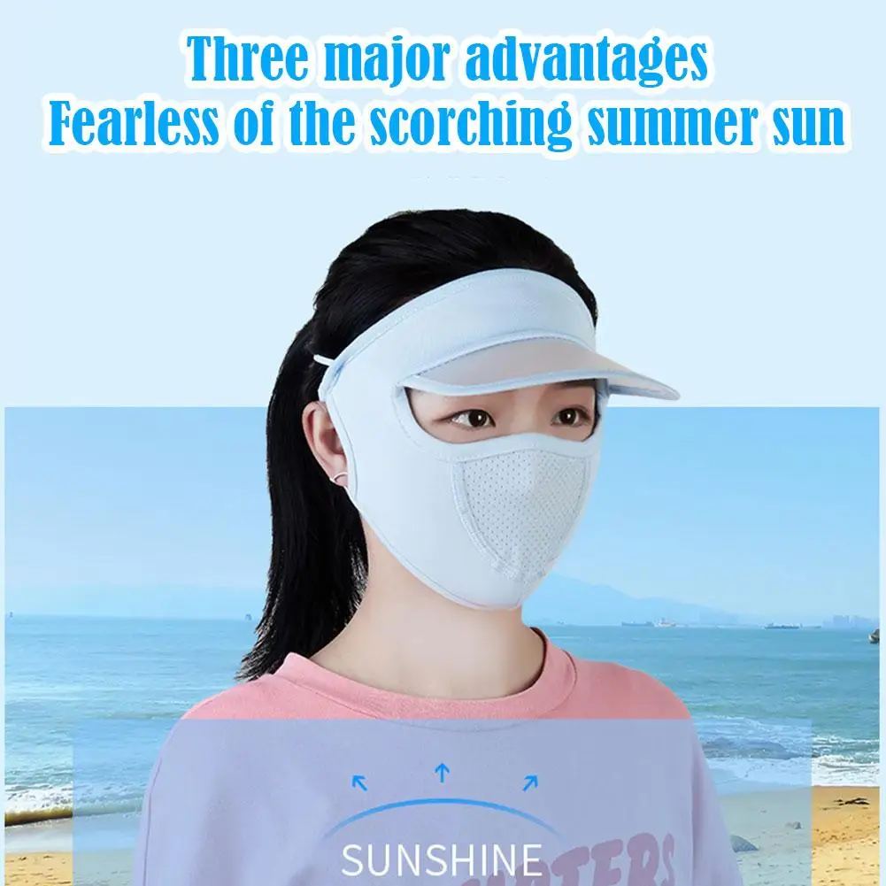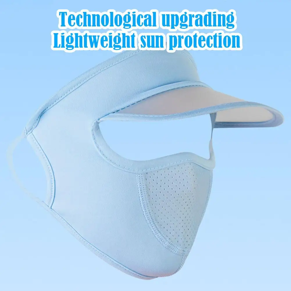 1.Breathable and Sun Protection: This breathable sun protection mask with a hat brim is perfect for the summer season. Made from thin and breathable ice silk material, it allows for easy airflow, keeping you cool and comfortable while protecting your face from the sun's harmful rays.