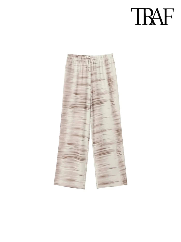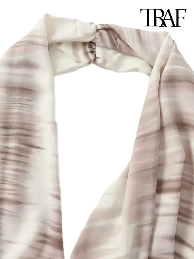 TRAF Women's Summer Tie-Dye Asymmetric Set Backless Sleeveless Hanging Neck Top + Pants Two Piece Holiday Street Casual Set