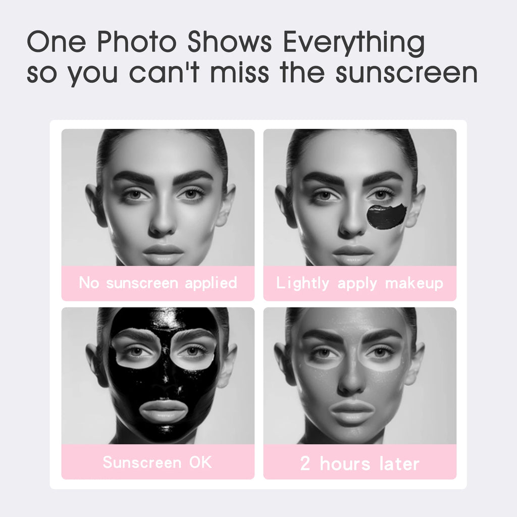 FOR SUNSCREEN TESTING: This UV camera mirror displays and checks your sunscreen application, HD screen, and enlarged display to help you apply sunscreen more evenly on your face. Importantly, this small mirror reminds you to protect your skin at all times