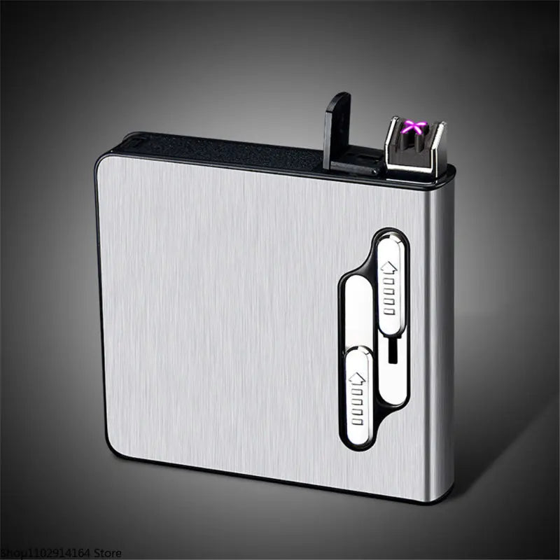 10pcs 20 Large-capacity Cigarettes USB Rechargeable Cigarette Case Lighter Double Arc Moisture-proof Lighter Gift for Men