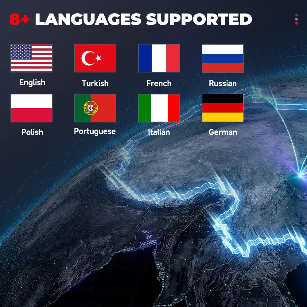 6.Multi-Languages: Support English, Russia, Poland, France, Germany, Portugal, Türkiye, Italy(product has installed English,need seriel number to add other languages)