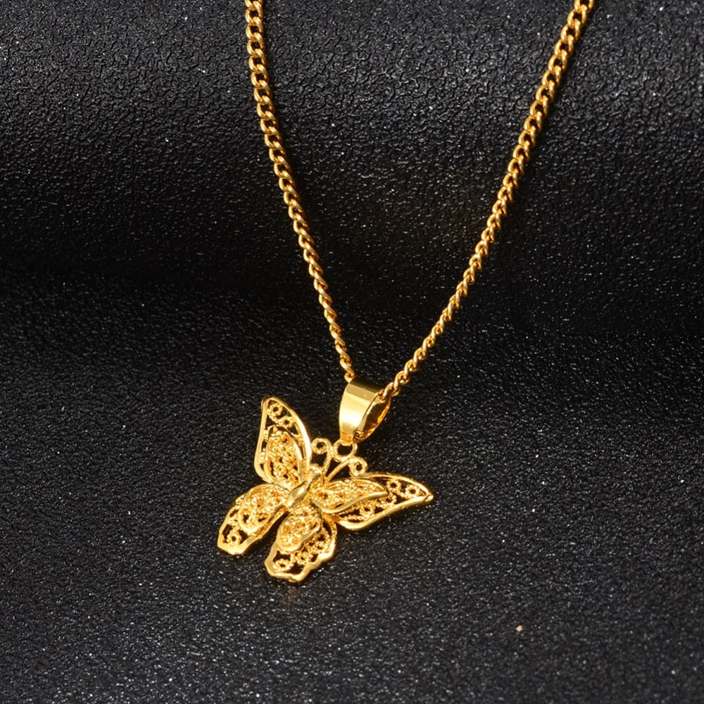 Anniyo Butterfly Charms Pendant Chain Necklaces for Women Girls Gold Color Jewelry PNG Gifts #006209
