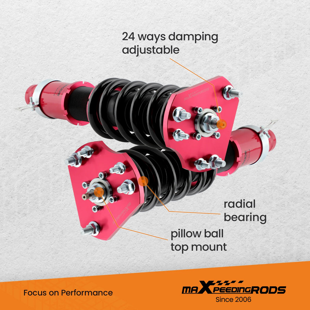 2. A 24 rebound damping adjustment level allows you the ability to perfectly dial in your coilover setup. You will experience better ride quality in all road conditions.