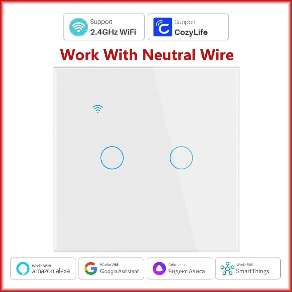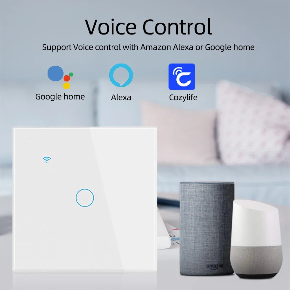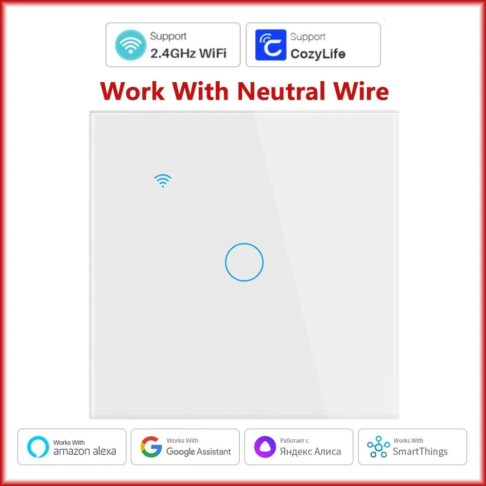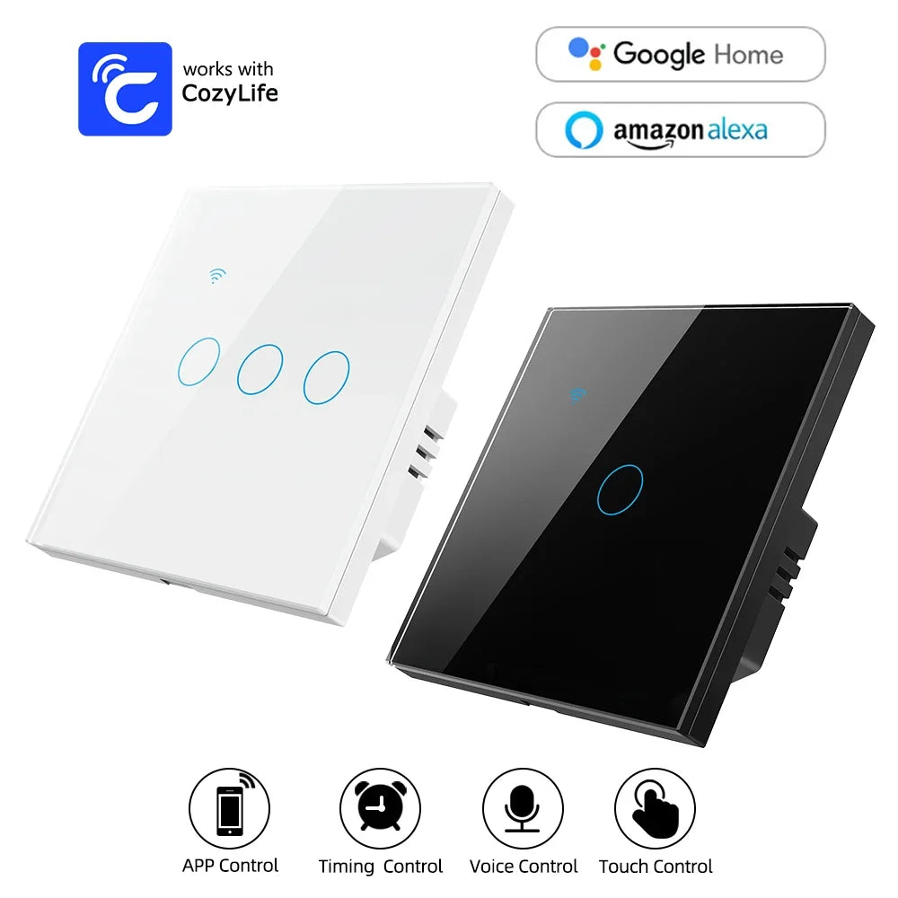 Cozylife WiFi Smart Switch EU Light Wall Touch Switch 220V Need Neutral Wire Smart Life Work with Alexa Google Home 1/2/3 Gang